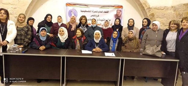 واستعرضت بعض من مسيرة الاتحاد وأن الهدف الأساسي للاتحاد هو نضالي بزوال الاحتلال الغاشم على أراضينا، وأن حق العودة أهم بند يتم العمل عليه في كل المحافل الدولية والاتحاد يمثل المرأة داخل الوطن وبالشتات و الذي يحق لكل مرأة بلغت 18 عام أن تكون عضوة فيه
