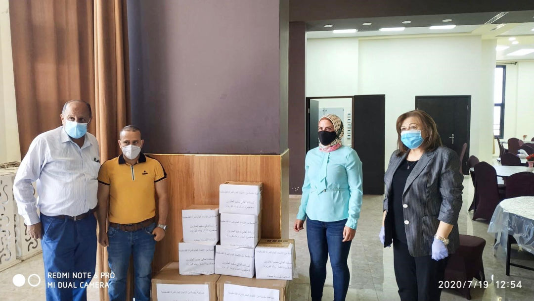 قدم الاتحاد العام للمرأة الفلسطينية مجموعة من الطرود الصحية والمستلزمات الوقائية، لمصابي فيروس كورونا وعائلاتهم في مخيم الجلزون شمال محافظة رام الله والبيرة، وذلك بالتنسيق مع عضو الأمانة للاتحاد الأخت هيثم عرار وبحضور رئيسة فرع الاتحاد في رام الله الأخت نازك عنبتاوي