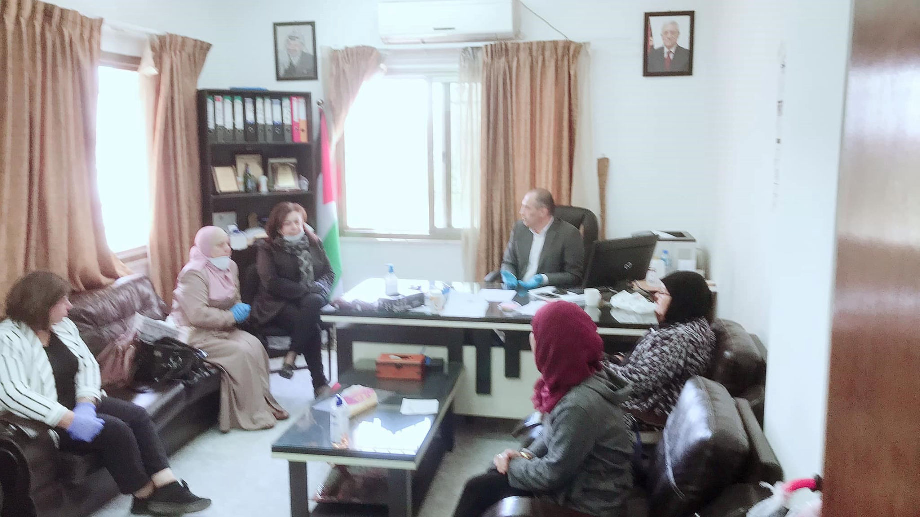 اجتماع أعضاء الهيئة الادارية للاتحاد العام للمرأة فرع رام الله البيره مع مدير مديرية التنمية الاجتماعية الأخ عماد عمران للتنسيق والتعاون لمساعدة الأسر المتضررة من جائحة كورونا