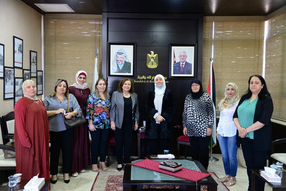 لقاء د.ليلى غنام مع رئيسة فرع رام الله والبيرة في الاتحاد العام للمرأة الفلسطينية نازك عنبتاوي ووفد من الاتحاد، حيث تم وضع المحافظ غنام بصورة النشاطات والفعاليات التي نفذها الاتحاد خلال أزمة كورونا، خاصة حملة جمع تبرعات ضمن كوبونات موقعة من الامانة العامة للاتحاد بواقع (5 ) شواقل لكل كوبون لصالح العائلات المتضررة من الأزمة في الوطن ككل، حيث أشادت المحافظ غنام بالدور الذي يلعبه الاتحاد العام للمرأة الفلسطينية على الصعد كافة