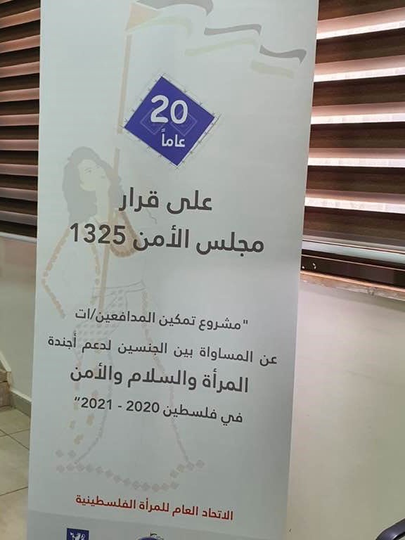 عقد الاتحاد العام للمرا ة الفلسطينية في اريحا ورشه عمل حول قرار مجلس الامن ١٣٢٥(المرأة والسلام والامن وذلك ضمن مشروع من الاقوال الى الافعال بالتعاون مع مؤسسة التعاون الدولي جنوب جنوب وبتمويل من وزارة الخارجية الايطالي حيث تم التوعية بالقرار ١٣٢٥ بالخصوصية الفلسطينية ومحاور العمل على تطبيق القرار ..والرؤية الفلسطينية لتطبيق القرار وخطط الائتلاف النسوي الوطني والخطة الوطنية الفلسطينية. الجيل الثاني والخطة الايطالية للقرار ١٣٢٥. الجيل الرابع