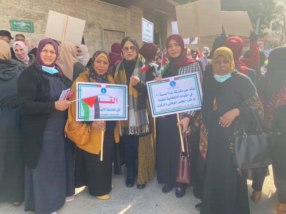 وافتتحت الوقفة اعتدال أبو قمر عضو الأمانة العامة في الاتحاد العام للمرأة الفلسطينية ببيان تضمن عدة مطالب من ضمنها "تفعيل الجهود النسوية في المقاومة الشعبية الميدانية من خلال استراتيجية وطنية موحدة ضد الاحتلال في مناطق المواجهة والتماس ضد الاستيطان والضم والتهويد، الانتخابات مدخل للتغيير المطلوب واستعادة وحدة الوطن، قانون حماية الأسرة، المرأة وكوفيد 19، المرأة والحماية الدولية"