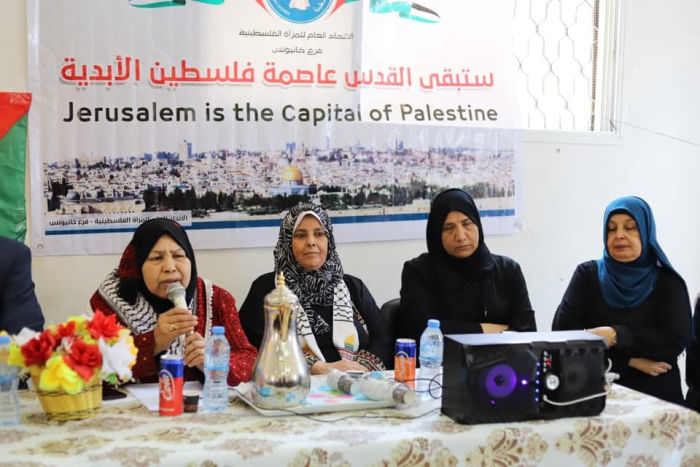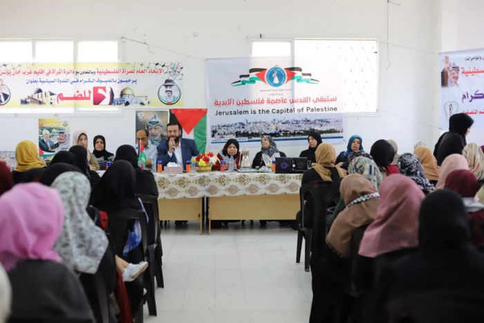 نفذ الاتحاد العام للمرأة الفلسطينية فرع خانيونس ورشة عمل حول صفقة القرن ومخطط الضم، بحضور عضو المجلس الثوري لحركة التحرير الوطني الفلسطيني فتح إياد صافي، وأمين اقليم غرب خانيونس وليد شقورة، والأخت زهية ماضي رئيسة الاتحاد فرع خانيوس، وسعاد معمر مسؤولة المرأة اقليم غرب خانيونس، وعدد من كوادر المرأة في محافظة خانيونس،